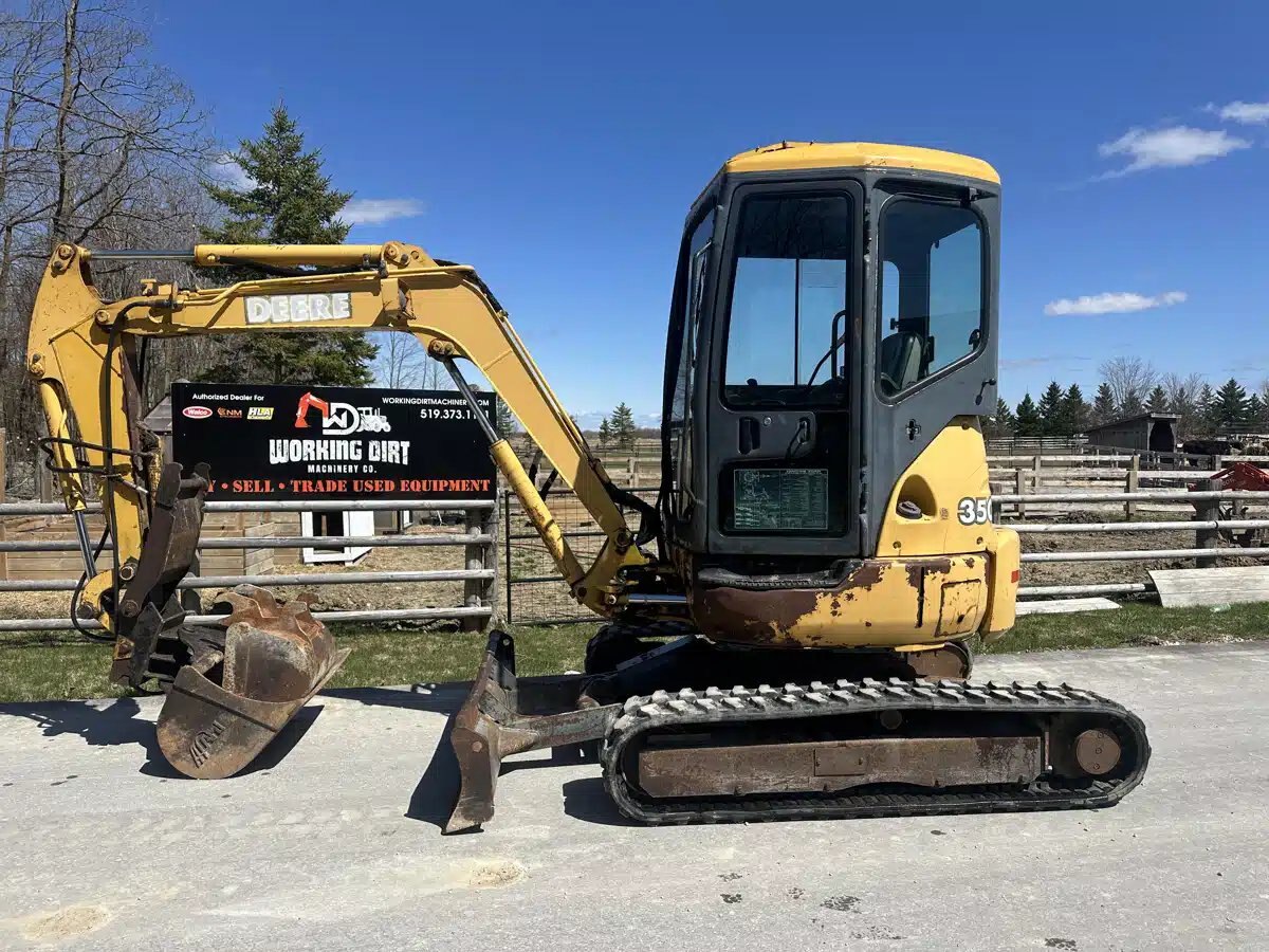 Sold 35C Deere Mini EX Hyd Tilt bucket and standard Tooth bucket Cab with heat Only 2500 Hours. Unit has been checked over in shop and looks to be in good working order. We can do a complete paint job for a additional cost.