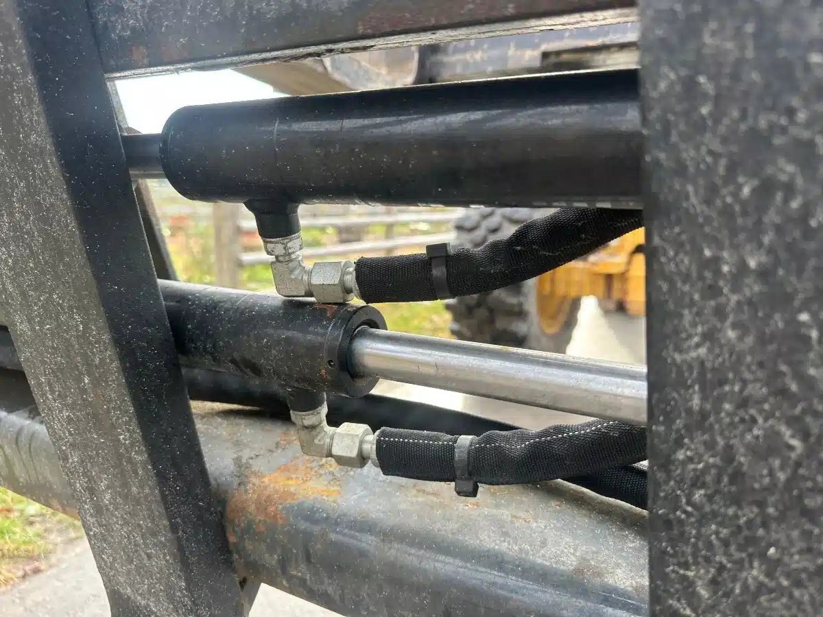 Skid steer pallet fork that has Hyd Adjustment with 42" tines 3500 lbs cap Like New. save 1000 over brand new