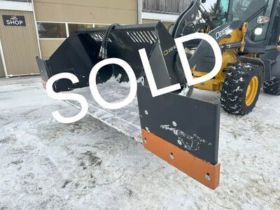 SOLD Yard sale Item 8' Fluney ALO snow pusher. pusher would work good on any 60-100 hp tractor Its got some bends and bruses but we are sure when the...