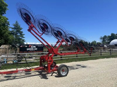 Faza 12 wheel Hay rake Demo'd 100 AC for this hay season works very well Model CTH-12 Transport width 2.50 mtr. Working width 7.40 mtr /24’, 3”...