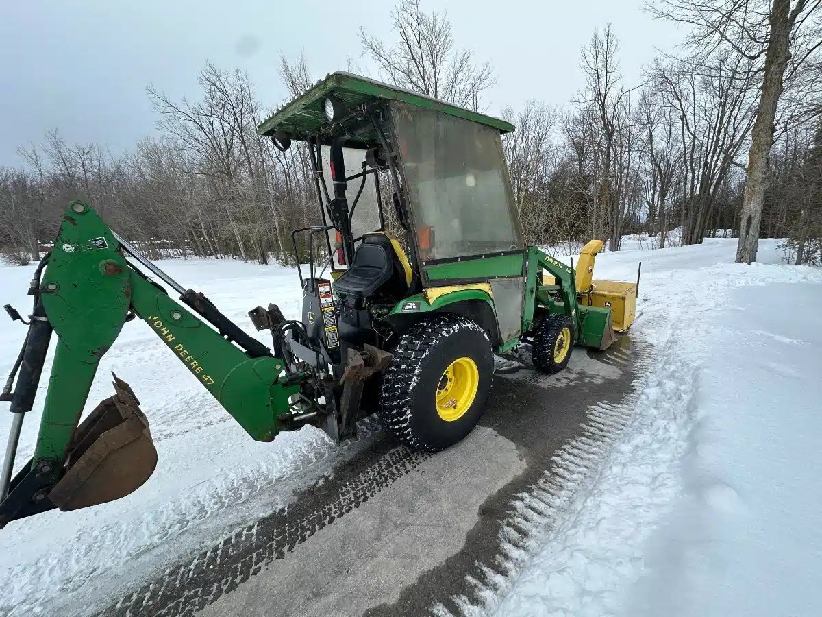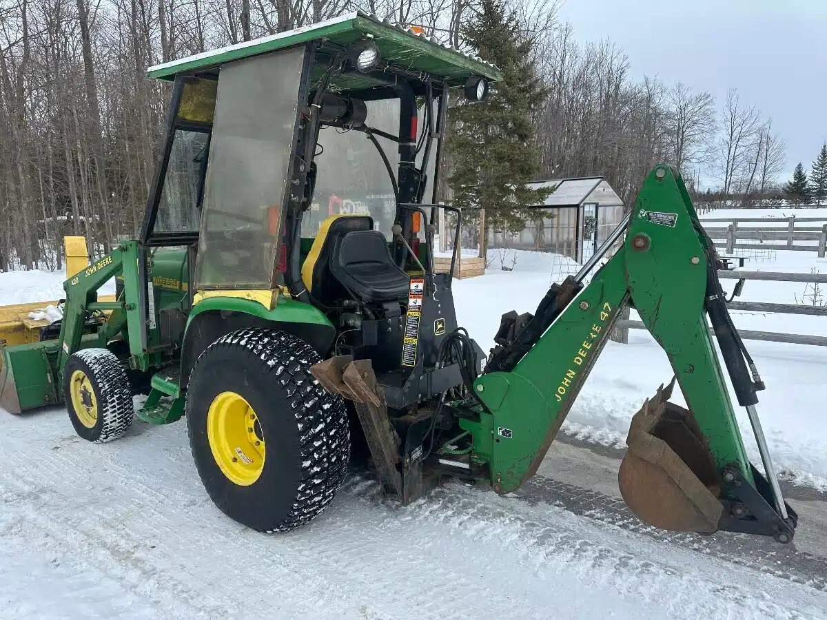 Nice package with all the attachments. John deere 4310 Class 2 Compact tractor Loader Backhoe 31HP Yanmar diesel, Home made Removeable cab with Heater. Quick attach bucket ( forks available for additional cost) only 2000 Hours Hydro transmission. Old school NO ELECTRONICS Tractor roughly a 2003