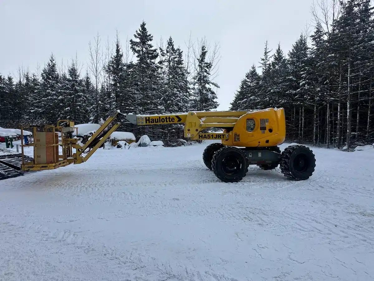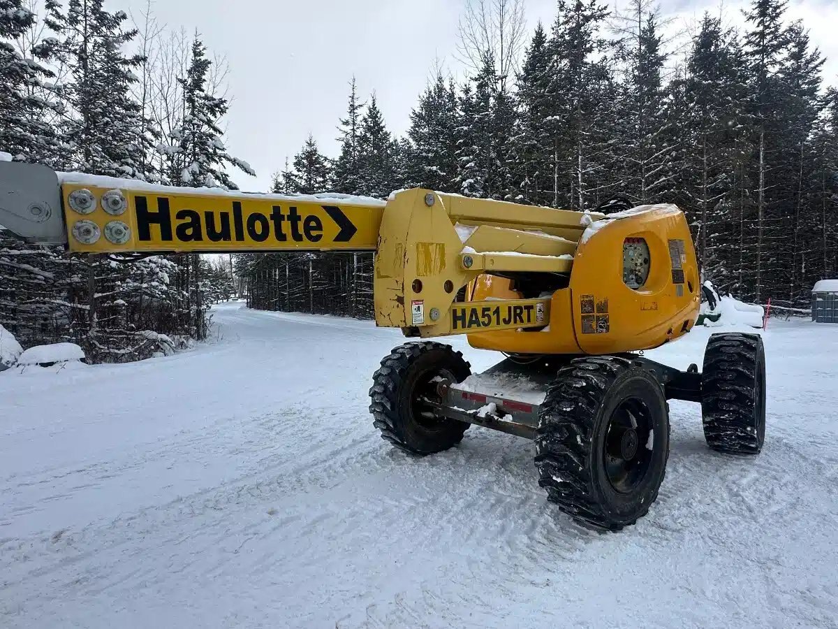 Haulotte HA51JRT Boom lift 57 ft Max Platform Height, 507 lb Max Weight Capacity, Jib, Deutz D2011L03I 3 Cylinder 31.2 kW 2.3 L Diesel Engine, Unit runs and drives. Being Sold AS IS WHERE IS not safetied.