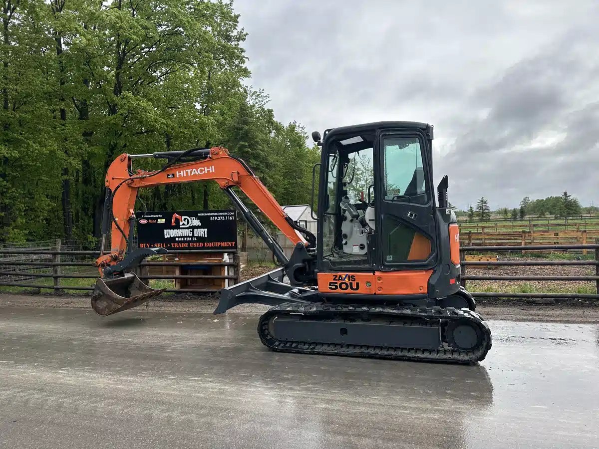 Clean Hitachi 5 Ton Mini Excavator Cab heat air Thumb Everything working very well. Machine has been completely gone over in the shop. We have been using it and it will be located off site