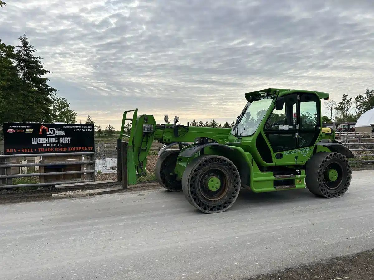 Heavy duty Marlo PanoRamic P55.9 CS with just a little over 8200 HOURS; this telehandler is in very good condition. It has a maximum lift height of 28.22 ft with a maximum reach of 15.1 ft. You can load at the maximum reach 4409.25 lb (2000 kg) and have a maximum load of 12125.43 lb. It develops 154.3 hp (115 kw) with an operating weight of 22751.8 lb (10320 kg). Huge hydraulic system capacity 29.1 gal (110 L). 2-speed hydrostatic transmission. Maximum speed 24.9 mph (40 km/h). Current Flat Free tires are worn; new tires and rims available. Financing and delivery available. Trades accepted. Message to Jonny — Working Dirt Machinery