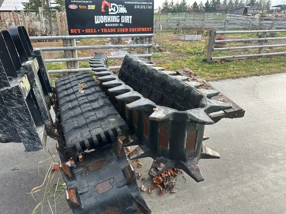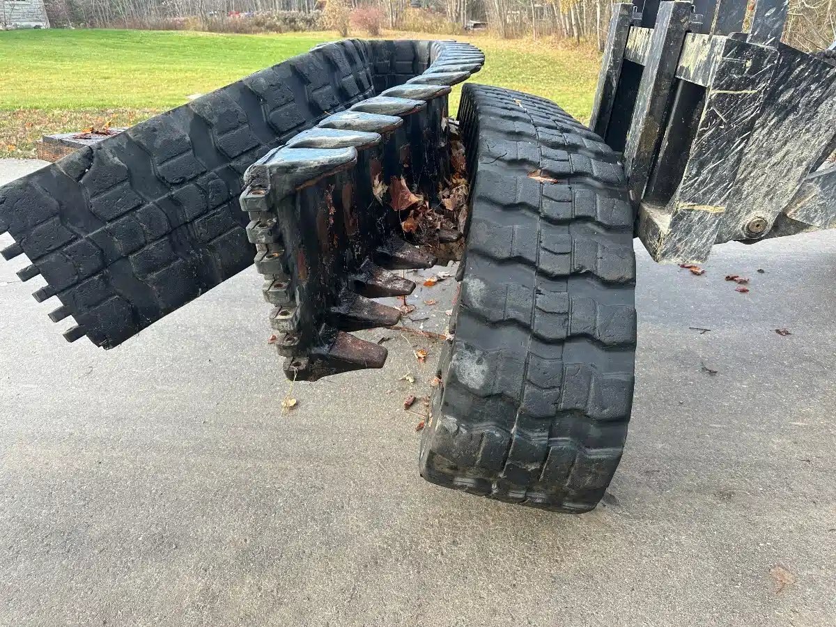 Over the tires Rubber Tracks for 12 x16.5 skid steer tires Them came off a Case SV300 skid steer Comes with wheel spacers