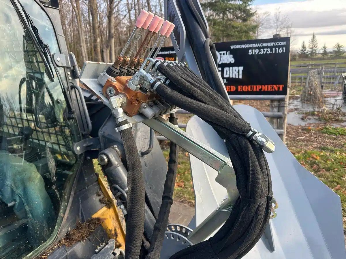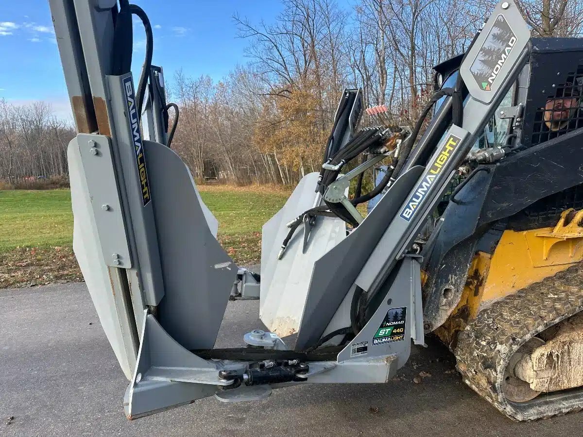 Demo Unit only used 2 times Skid steer Bauma light Tree spade with Hyd controls 4" trees, 40" root ball 30" root depth, 52" opening, 4 blades, weighs 1934lbs, full Blade Truncation.