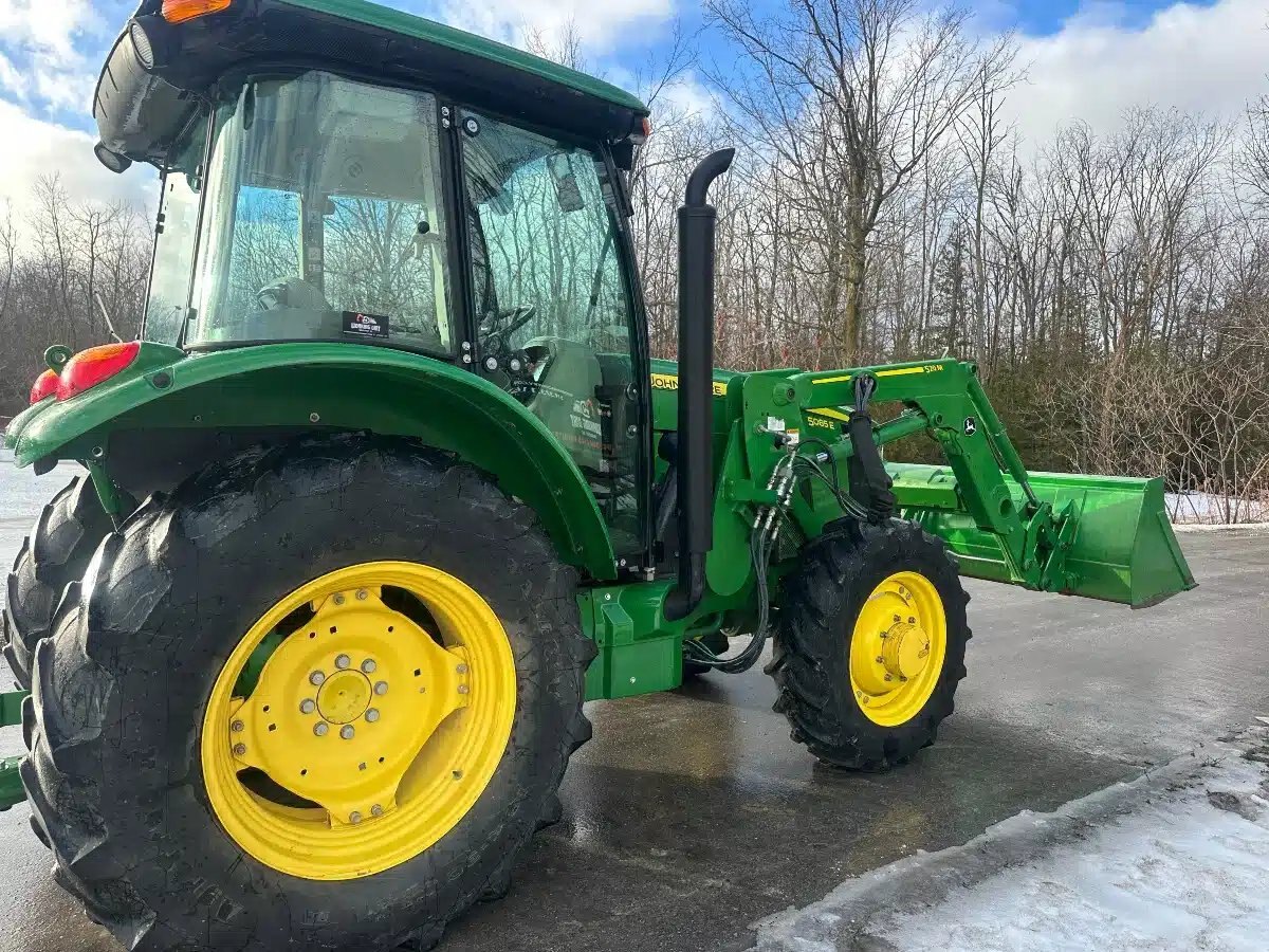 Low hours Good shape John Deere 5085E Left hand Power shuttle. 24 x24 Speed Duel power Transmission 2 rear remotes, Cab heat and AC. Tractor Has ALO QT with bucket and other attachments available. rubber is getting worn but We can sell you brand new tires of your choice. Tractor has been Through the shop and is ready for work.
